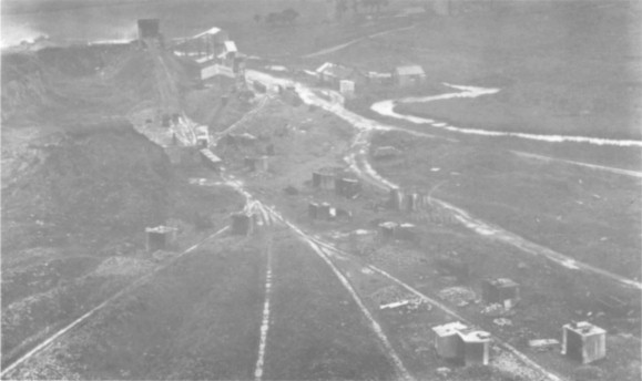 The quarry and crushing plant as seen from the north, with petrol loco in right foreground, October 1936. (Author)