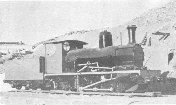 Tracklaying was commenced in 1869 from the Port and reached the main minim area at O'Okiep by 1876. The rails were light with longitudinal sleepers and were designed for mule traction. It was not until 1886 that the track was improved and steam locomotives took over the haul on the first twenty-two miles. In the next few years the track was relaid and loco haulage was used throughout. All in all the railway was a feat of engineering. Water had to be found for the locos (most of the stations seem to have been water stops with circular water tanks and fierce grades had to be climbed. Forty-seven and a half miles from the coast the worst part of the climb was reached, and the next seven and a half miles rose 1330 feet, with grades of up to 1 in 19 and the line hanging on the side of the mountains. Present day travellers drive on a road over part of the trackbed, and the remains of three crumpled wagons strewn down the hillside graphically illustrate the hazards involved in operation of the railway. The line throughout to O'Okiep and Nababeep was about a hundred miles long and abounded in curves and gradients. However the weekly passenger train was free, and twenty loaded wagons of coal and merchandise from the Port or ore from the mines raised the echoes of the mountains behind two Kitson 0−6−2 tender locos. It would have been nice to have seen the yard at Port Nolloth a bustle with activity with rows of locos on shed or being overhauled in the workshops, and a bevy of ships in the harbour loading copper for Swansea.