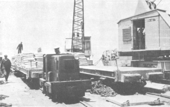If you take the Thesen's ship to Port Nolloth on the Namaqualand coast you will find that rails lead off the tiny concrete jetty, and that all the off-loaded cargo is hauled away in 2ft bin gauge wagons by Ruston diesels. Port Nolloth is but a lonely village in a barren and wave-beaten coast. The nearest towns are over fifty miles distant and they are scarcely bigger or greener. Sand dunes stretch miles inland, rising into a stony waterless succession of hills and mountains. It hardly ever rains and when it does it is little more than a sea mist that the dunes absorb like blotting paper. Water is one of the essentials, and is found only by sinking wells; the nearest lies some five miles inland and is the present terminus of the railway. Ever since the harbour was built water has been hauled in over the same railway that runs on to the end of the jetty.