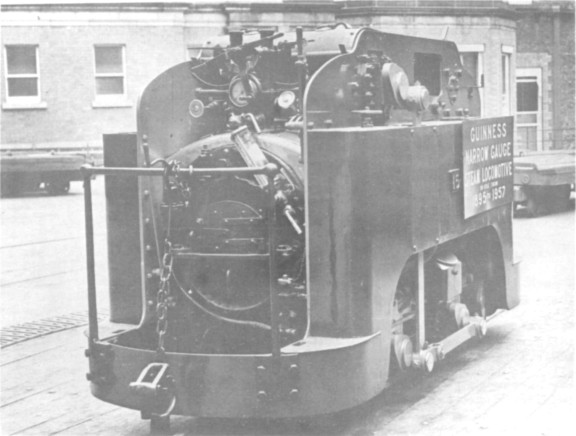 Broad gauge engines Nos.2 and 3 were a pair of Hudswell Clarke outside cylinder 0−4−0 saddle tanks, built in 1914 and 1919 respectively. Apart from each being fitted with a brass bell and having the motion and wheels enclosed for working through the Dublin streets, they were a standard design adapted for the 5ft 3in gauge. The leading dimensions were - cylinders 15in by 22in; wheel diameter aft 4in; boiler pressure 175 lbs per sq in; weight empty 24 tons. The most modern of the quartet of broad gauge locomotives was a Hudswell Clarke 0−4−0 diesel, No.4, named GUINNESS and built in 1949.