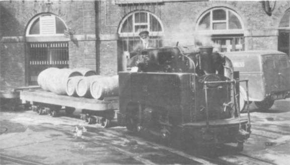 Regarding the nature of the traffic and method of working, there has never really been a "main line" on the system as trains usually worked short trips on each level or between adjacent levels. On the bottom level narrow gauge trains worked between the broad gauge loading and unloading banks, and the cask washing sheds. Often, more than eight thousand casks could be moved by one train in a single day. 0n the middle level, malt was the chief traffic, trains running between the maltings and the malt store. At the upper and middle levels, trains removed used hops and spent grain to the disposal points, whilst on the upper level malt and hops were taken to the brewhouse. At one time narrow gauge trains also served the jetty, connecting it with the cask cleansing and racking plant.