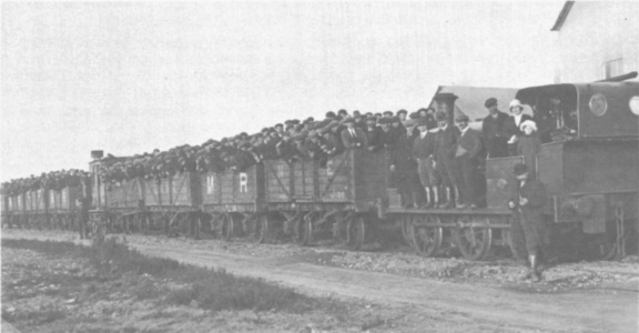 92 AVONSIDE (0-6-0 saddle tank, Avonside 1742 of 1916) was delivered here new, but we would hesitate to say that the second engine half way down the train was an Avonside; but at least it isn't PYRAMUS (0-6-2 side tank, Hawthorn Leslie 2878 of 1911) which is rumoured to have worked on the CCMR. If only some of the "gaffers" could have been shifted off the running plate of the Manning Wardle! Our thanks are due to Dr A.L. Barnett for bringing this interesting card to our notice, and to Mr A. Wilson who loaned the card for reproduction.