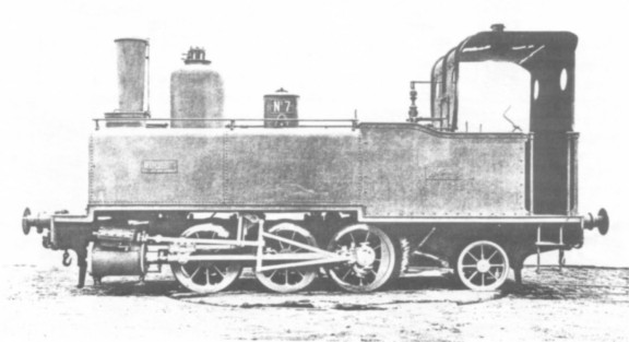 Throughout the 1870's and 1880's Lucien Corpet continued to produce locomotives of several gauges for public works contractors, many of them metre gauge six-coupled tanks. The first metre gauge locomotives built specifically for light railways were, according to the firm's records, Works No.315 despatched on 8th January 1880 to the Chemins de Fer du Cambrésis, No.1 L'ESCAUT, Works No.330 despatched on 17th June 1881 to the same railway as their No.2 SEILLES (both six-wheeled), and Works Nos.341-344 despatched to Chemins de Fer de la Sarthe between 2nd August 1881 and 20th December 1881. These latter were 0‑4‑0 side tanks named LE MANS, LE GRAND LUCÉ, BALLON, and MONT-BISAN. At this time Corpet introduced a type of contractors' loco which was convertible from metre to another gauge and vice-versa. The first was four-coupled, named L'ABEILLE, and despatched on 1st November 1880 to a contractor called Ythier (Works No.321). Although production stretched spasmodically over ten years until Works No.513 was despatched on 21st April 1890 to a contractor called Béraud, the design does not seem to have been very successful as only fourteen of the 193 locomotives built during this period were of convertible types.