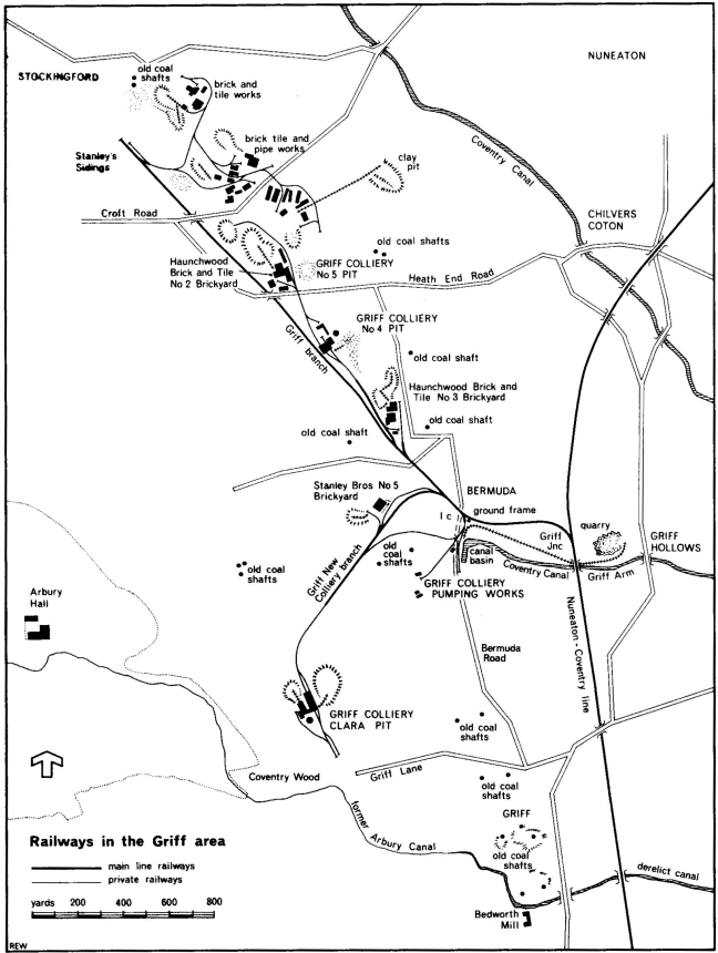 Nuneaton, a small town in North Warwickshire, was formerly known principally for its coalmining and associated industries. All the local pits have now ceased production, the last being Griff No.4 which was closed following the exhaustion of coal reserves. This was one of the pits on the Newdigate Estate worked by the Griff Colliery Co Ltd, of which Sir Francis Newdigate, one-time governor-general of Bermuda, was the driving force for many years. Until 1882 the Griff mines were operated under the direct control of the Newdigate family, but from the 12th September 1882 a limited liability company was incorporated to run the undertaking. This company - the Griff Colliery Co Ltd - continued in being until nationalisation of the coal industry came into effect on 1st January 1947.