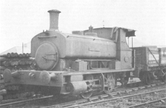 BRITANNIA (Hunslet 222 of 1879) at Griff Sidings, on the ex LNWR branch on 19th September 1955. Compared to GOOD LUCK, this locomotive has brakes on the middle and rear axles only. (M. J. Lee)