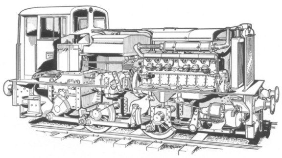 An unusual depiction of an industrial locomotive - a cut away view of Peckett's 200 hp diesel included in their 1957 desk diary. (IRS Collection)