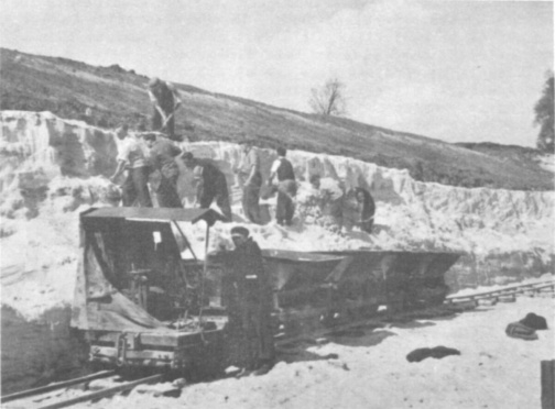 In the heavy snows of 1962-1963 the railway was impassable for some time but eventually, with some shovel work and help from a snowplough, the line was cleared. Arnold’s trains ran with a loco at each end and Garside’s with two engines pulling. Some of the snow was piled so high beside the line that with the force from the exhaust pipes blowing the snow about, the locos sometimes finished their journey with snow inside the cabs and plastered over the mainframes. On one day in particular, an Arnold’s train left "Double Arches" at 10.30a.m. but soon got stuck. A gang worked hard with shovels against a high wind and the locos eventually struggled through to Billington Road at 4.30p.m.!