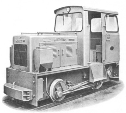 Forward and reverse speeds of 2.4, 4.95, 9.1 and 15..3 mph are available, and the locomotives are fitted with handbrake only which operates on all four wheels. They have a maximum axle load of 4 tons 18 cwts, can traverse curves of 60ft radius, and have a maximum tractive effort of 6,300lbs. Assuming the train to have a starting resistance of 18lbs per ton, they are capable of starting a 90-ton train on a 1 in 50 grade or 340 tons on level track, and can be used on track laid with rails as light as 25 lbs per yard.