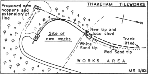 The wintry weather early in 1963 completely halted production for Hall & Co. Ltd. were unable to dig sand, and Thakeham similarly was unable to produce bricks, even if anyone could have used them. After the initial rush of orders when the thaw came, it was found that orders were coming in at a greater rate than ever before. The railway was brought out of its enforced hibernation and the works continued at full pressure. It was realised in mid−March that existing manufacturing facilities would soon be inadequate, and that expansion would soon have to occur. Consequently, the idea of a conveyor belt was dropped, and it was decided to alter the railway with a view to keeping it going.