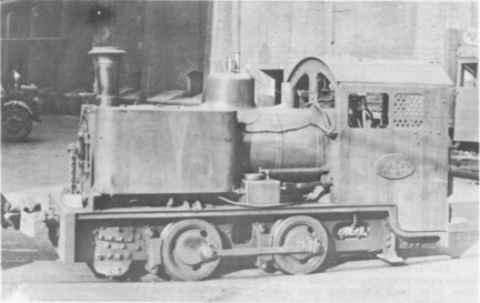 The two 3' 0" gauge locomotives at the Vauxhall Gas Works were the nearest industrials to Big Ben. A number of enthusiasts missed them although the Works were immediately at the south end of Vauxhall Bridge. VULCAN was built by Peckett to Bagnall design. The wing tanks were a unique feature of Bagnalls and the inside cylinders made them exceptionally rare. The drivers were not dwarfs, but sat sideways looking across the track. (VULCAN, Peckett 1805, was supplied new on 31−7−1929. It was the smallest locomotive built by Peckett and was known rather appropriately as the "Ant" class. – Hon. Ed.)