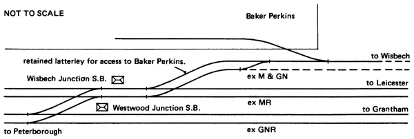 I am enclosing a 1914 view of the works (regrettably not suitable for reproduction — TJL) which shows a rail system with a loco on a rake of trucks and an OHW system in part of the yard sidings. The system was extremely active during World War 2, but gradually declined until the connection to British Railways was removed in June 1971. The actual connection was a link to the old M&GN line, closed to passenger traffic in 1959 and completely a little later. Subsequently access to Baker Perkins meant keeping open a few hundred yards of the M&GN from the ex‑Midland Railway line at Wisbech Junction. Closure of the connection followed track modifications in the Peterborough area which saw the end of the link from the ex‑Great Northern main line to the old Midland line at Wisbech Junction. Latterly works traffic was very sparse and consisted of a few regular wagons of scrap iron, plus the occasional wagon from the continent. Internal shunting was achieved by a dumper truck fitted with a sleeper at buffer level.